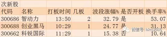 上涨情况:今日次新股板块整体小幅下挫-0.28%,不过盘中仍然有智动力、创业黑马和科锐国际3只个股涨停。