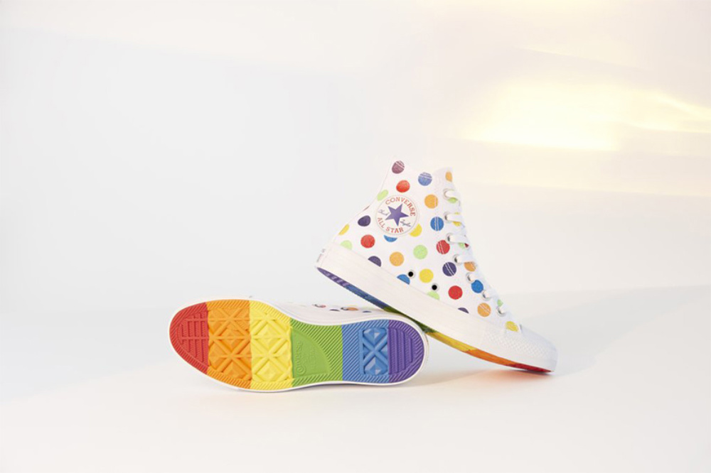 Miley Cyrus早先和Converse推出Blingbling的合作款以后,又趁热打铁为LGBTQ群体发声,和Converse再次合体,推出了70年代Disco复古风格的限量系列,以代表同志群体的彩虹颜色为设计主题。