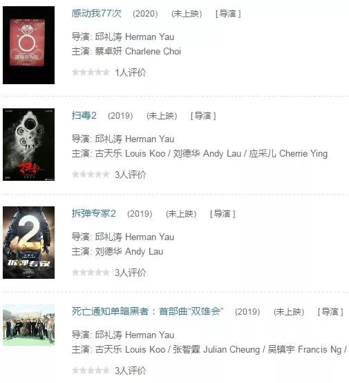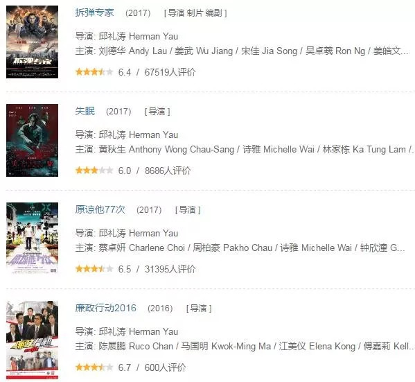 高产似那啥的邱礼涛又出新片了,这一两年他导演了十多部电影。