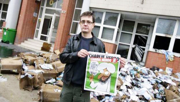 社长Stéphane Charbonnier(笔名 Charb)九年来一直收到各种来自极端伊斯兰主义的死亡威胁,却仍旧在各种公开场合表示“不可能放弃自己的工作”,“人们需要一点幽默感”,“宁愿站着死也不要跪着活”。他本人于7日在袭击中遇害。