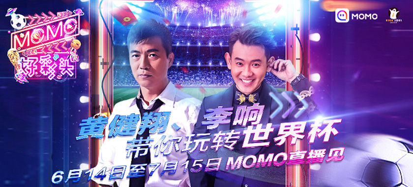 6月13日, 移动社交平台陌陌宣布,将联合知名主持人黄健翔、李响等推出世界杯活动《MOMO好彩头》和《金球大赢家》。