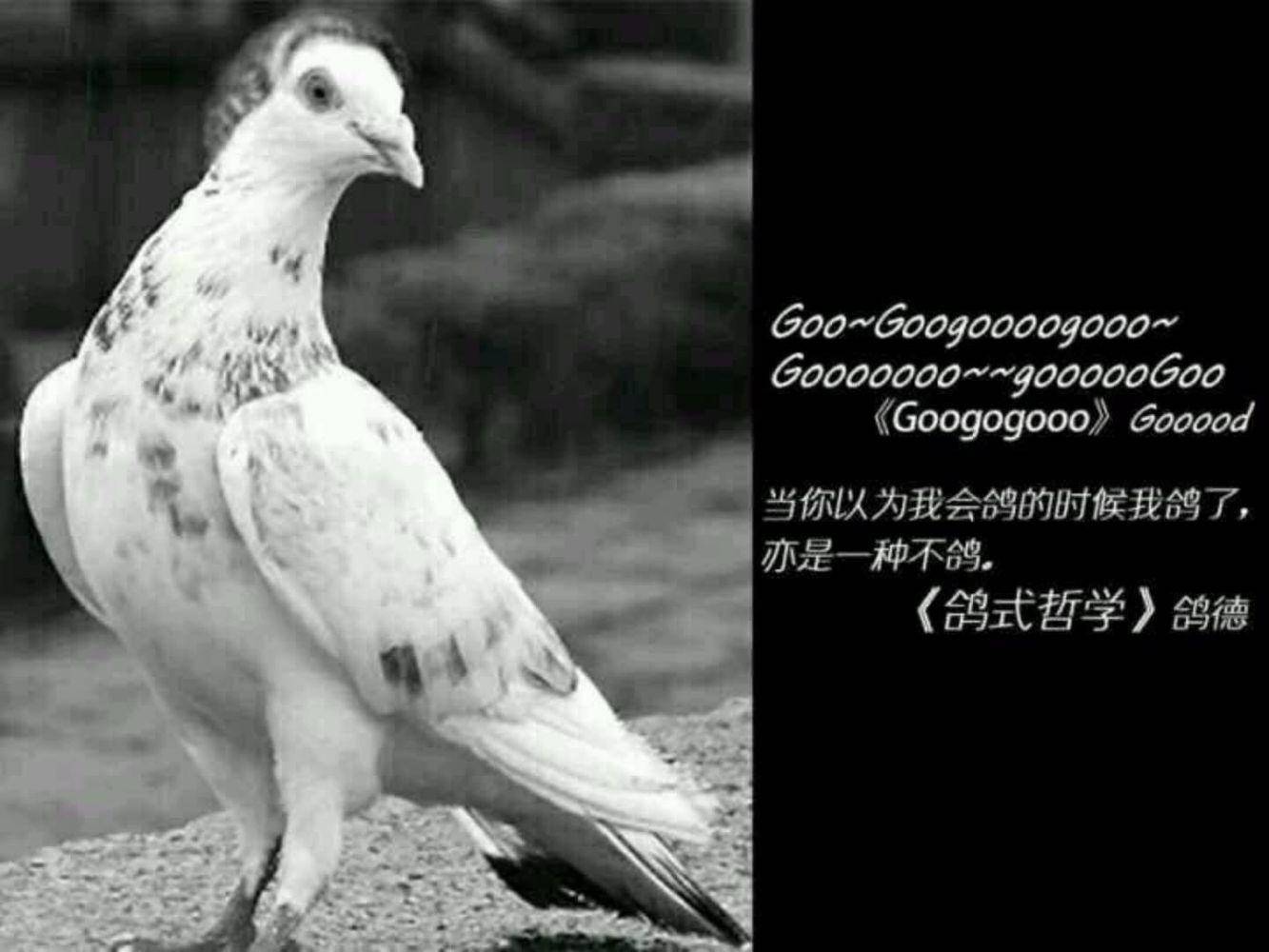 也难怪,鸽界流传着这样的名句:“你鸽我,我鸽你。你不鸽我我还鸽你。我鸽你你还拆穿我,那我就弄你。”