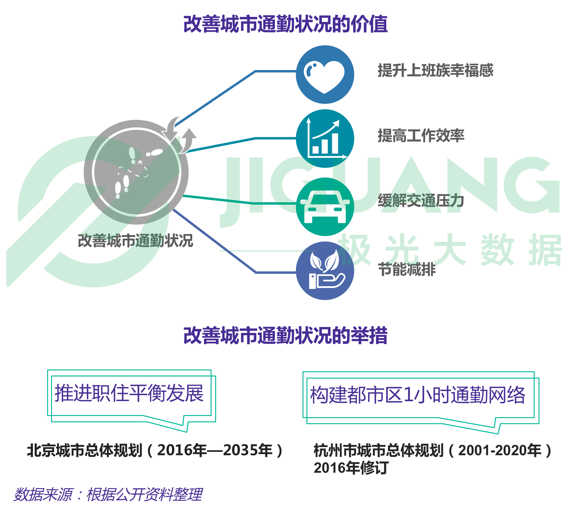 面对城市通勤带来的问题,各大城市在城市总体规划中也提出了各种方案,如北京提出“创新职住对接机制,推进职住平衡发展”,杭州提出“构建都市区1小时通勤网络”。