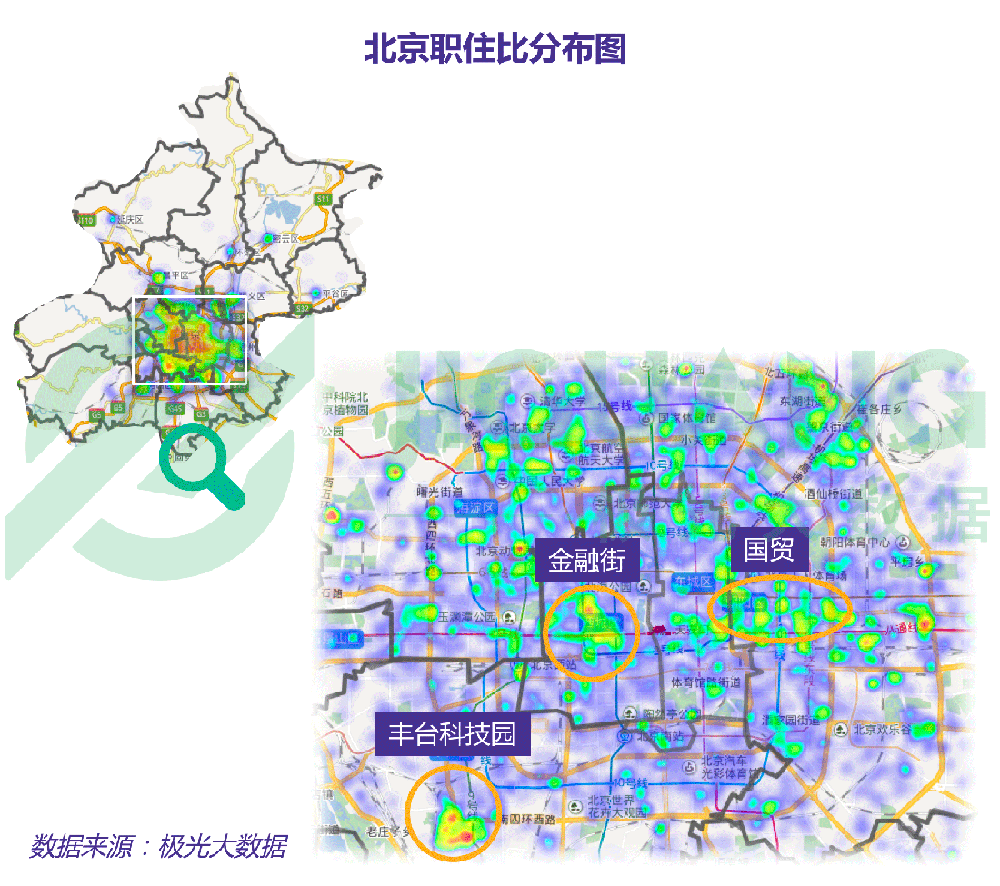 在五环以内,国贸、金融街、丰台科技园为北京职住比较高的区域。