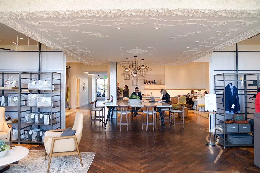 不喜欢商场的顾客可能有一天会走进一家像Local这样的店铺,这是诺德斯特龙去年秋天在西好莱坞开的实验式门店。这个服务站面积3000平方英尺(和便利店面积差不多),里面几乎没有商品;更像是一个地区网络中的一根辐条。顾客可以在线选购商品,在这试穿,试穿的衣服是从附近九家全品类商店中调来的。他们可以在这和造型师聊一聊,或者找裁缝改衣服(诺德斯特龙聘用了1300名裁缝,居全美首位,而改衣服可以增加人们光顾的次数)。他们甚至还可以只是在这喝一杯。