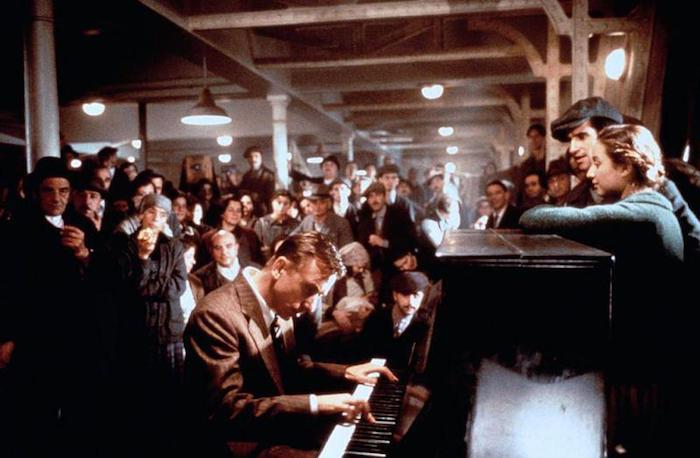 水边观船,有种看别人驶向远方的羡慕。舟上客旅,反倒在凝视灯塔之际感到人生的缥缈。这段经历总让我联想到电影《海上钢琴师》。一九〇〇年,“弗吉尼亚人号”豪华邮轮上的一名孤儿被遗弃船舱,水手们把他抚养长大,取名“一九〇〇”。懵懂少年无意间推开“禁止入内”的舱门,触摸到钢琴,从此把灵魂交给键盘。一生中唯一的爱情,朦胧如雾,催生了他一生中唯一的创作。他俯身键盘,弹出了音调简练、忧郁内敛的“船歌”。电影的经典情节是“斗琴”。高手过招,出手不凡,他打败了桀骜不驯的爵士琴帝。“斗琴”成为电影史上充满杀伐之声的“渔歌互答”的经典片段,炫技、速度、即兴、超强记忆,样样超群,那个在飞速敲击中变得滚烫炽热的琴弦并足以点燃香烟的触点,简直是夸张至极、登峰造极的神思妙想。