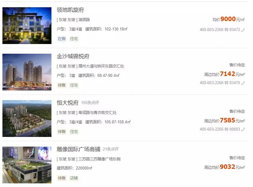眉山东坡区部分在售楼盘价格信息(数据来源:安居客)