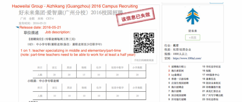 甚至在人员招聘中,爱智康也仍然在以好未来的名义对外进行宣传。