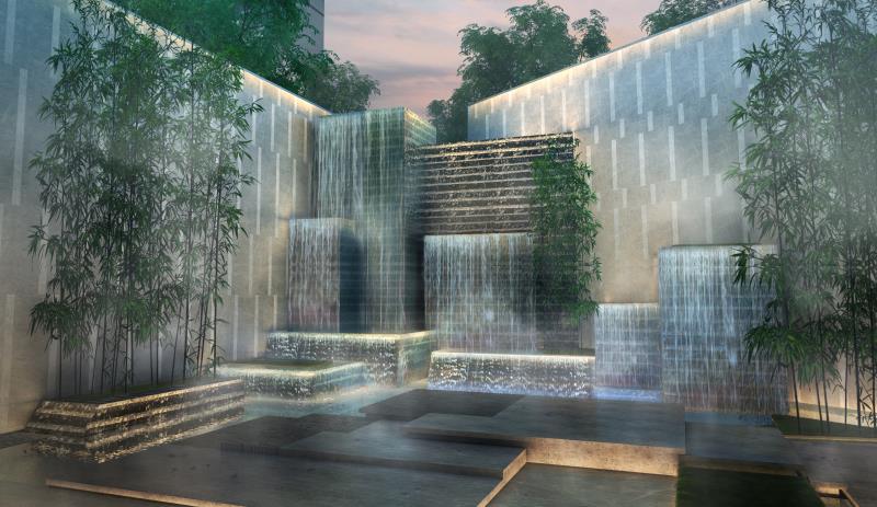悦风华售楼处即将公开,完美绽放!值得一提的是售楼处的设计也是颇具匠心,穿过地面接待区然后眼旋转扶梯到达地下真正的接待中心,厅堂有一处景观设计,建成后的效果图如下: