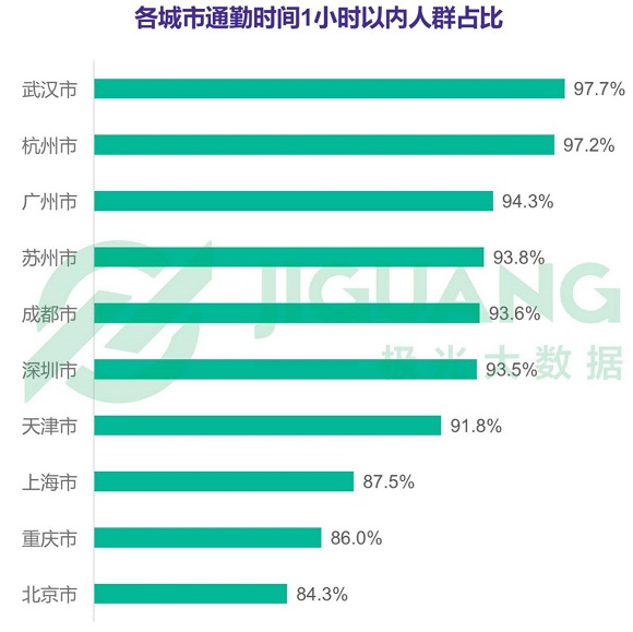 最为轻松还属武汉上班族,平均通勤路程为8.2公里,比北京居民短5公里。但即使如此,也不算有多大幸福可言。
