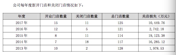从人人乐给出的过去5年门店变化数量来看,自2013年以来,人人乐的门店数量从128家到如今的125家,净减少3家,期间新开门店52家、关店55家;在2014、2015和2017年度,关闭的40家门店造成了差不多4.5亿元的损失,其中仅2017年一年,就因关店产生了高达1.04亿元的损失。