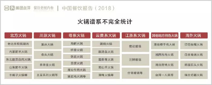 火锅市场细分趋势明显,一方面全国各地不同的饮食习惯天然区分出不同的火锅品类,而另一方面,竞争激烈的火锅市场让商家们往更加细分的领域发展,以求得更大的市场区分度。