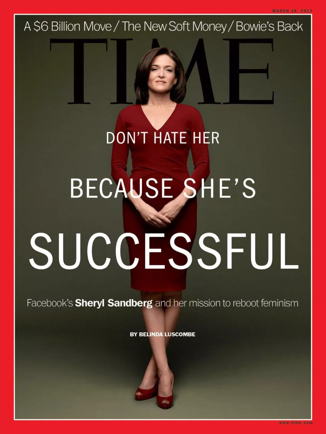 此后几十年女人们一直很争气。2008年,雪莉·桑德伯格成为“Facebook的第一夫人”。她在自传《向前一步》中,鼓励女性打破内心的自我限制。桑德伯格说自己曾在孩子们的头上发现虱子——承认自己不可能在每一个角色上做到完美,女性才可以不用逼迫自己,在事业和家庭之间二选一。