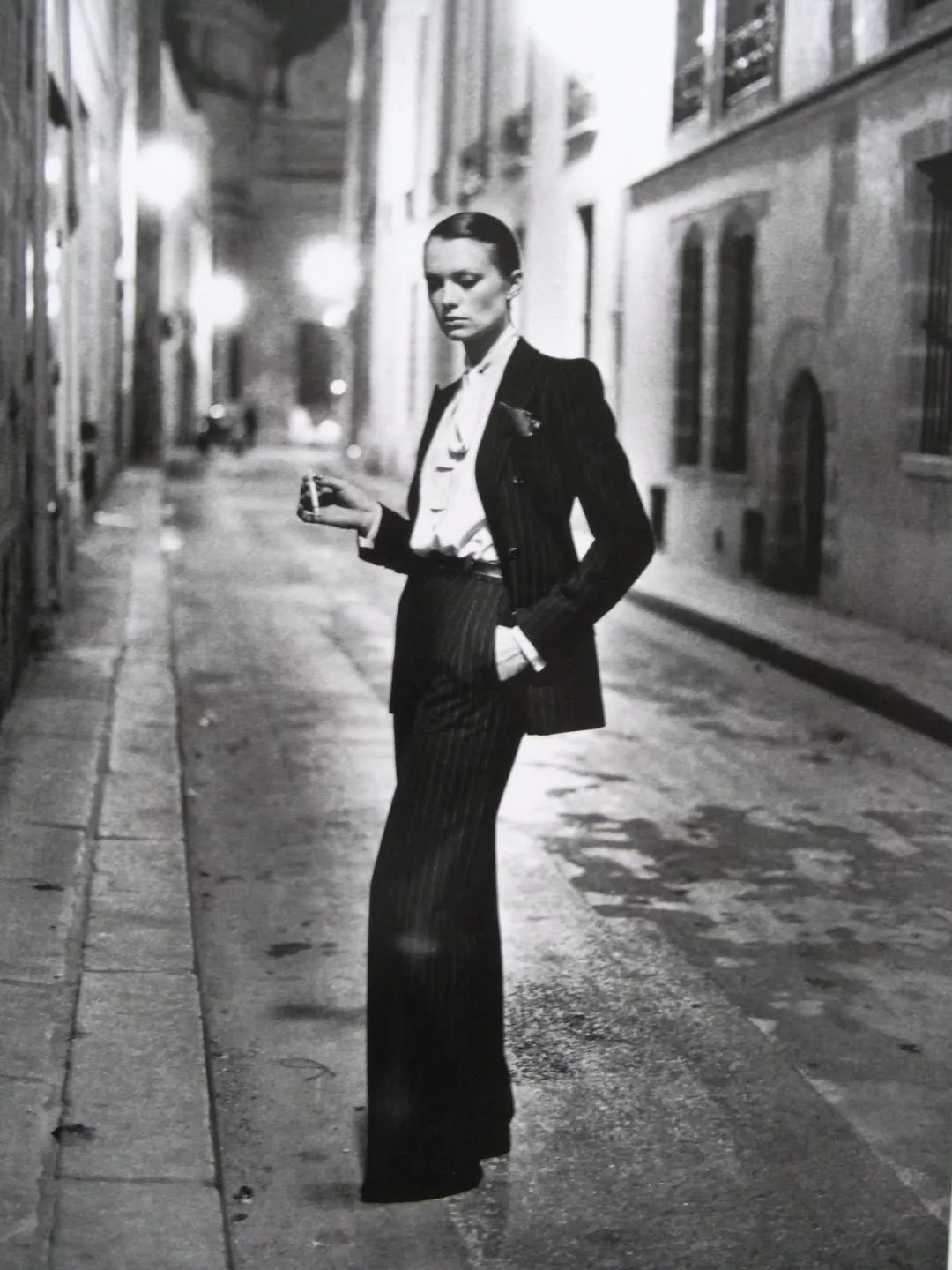 还是1966年,Yves Saint Laurent设计了吸烟装。而今天湮没在历史中的美国设计师Halston曾在1970年代以一条麂皮裙引起轰动。1974,Diane von Furstenberg亮出了她的裹身裙,魅力与功能兼具,女人们可以直接从办公室穿到酒吧。