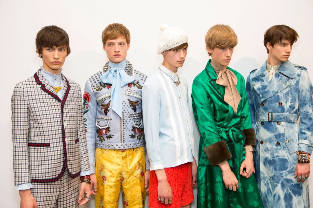 2015年,换设计师的Gucci脱胎换骨,秋冬男装运用了大量的雪纺纱、蝴蝶结、蕾丝,大衣也是女装般妩媚。Gucci还将男女装秀合并同场,Burberry,Balenciaga,JW Anderson马上就响应了。