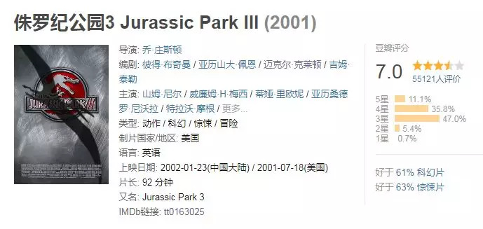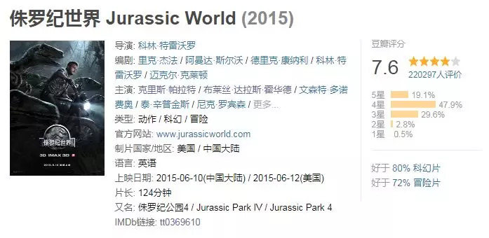 虽然IMDB不及格,但国内观众多少还是很喜欢恐龙上银幕的