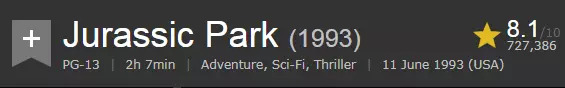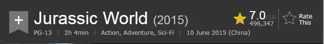 到了2015年,[侏罗纪世界]终于又重启了系列。这部片子不仅票房现在仍然停留在全球票房前5,同时观众中口碑也相当不错,评分更是类型里的中上游。