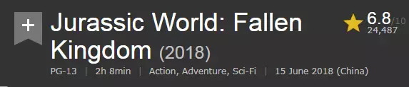 在IMDb上和前作在一个水准,烂番茄也有影评人为这部片子给出的好评,尤其是票房,必定成为“侏罗纪系列”的新高。