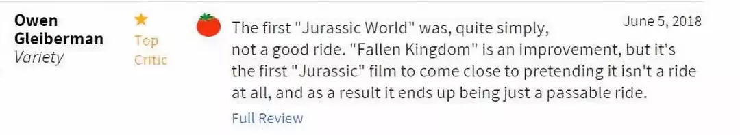 “第二部[侏罗纪世界]在第一部基础上升级,这是“侏罗纪”系列里首次不是全部旅行,最终呈现的结果,是令人满意的。”