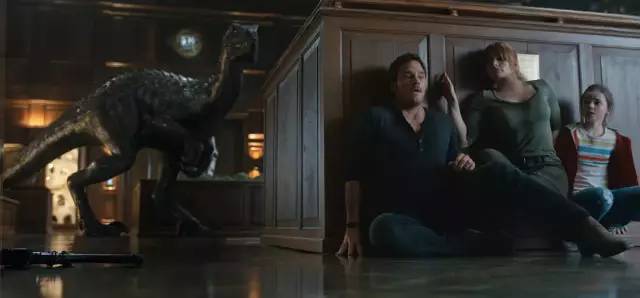 比如场景的再次出现,[侏罗纪公园]中最令人屏住呼吸的厨房躲避段落,[侏罗纪世界2]也几乎复刻。