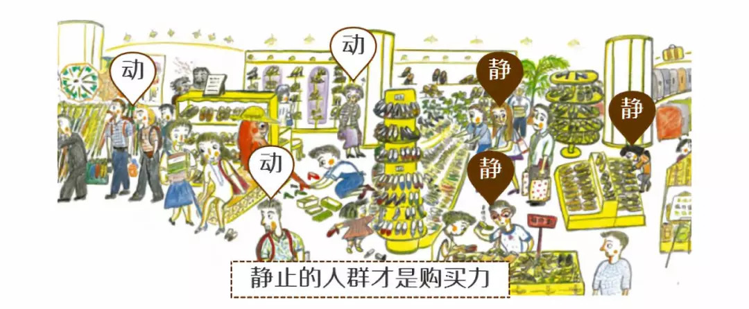 人流动线:把人在门店内走动的点连起来,就是动线。