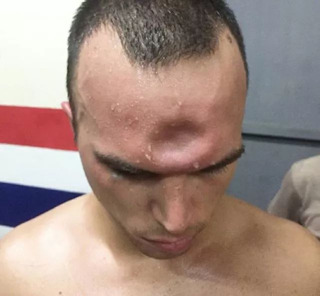 2017年,在一场泰拳比赛上,法国选手Jeremy被对手一记肘击,正中头部,头骨当场骨折,导致额头凹陷,比赛不得不立即终止。
