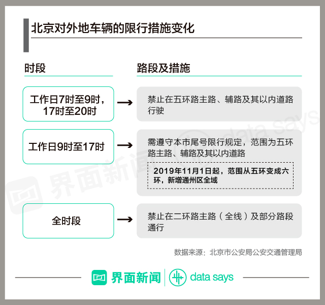 对外地车而言,限行区域越来越大,“进京证”时效也越来越短。