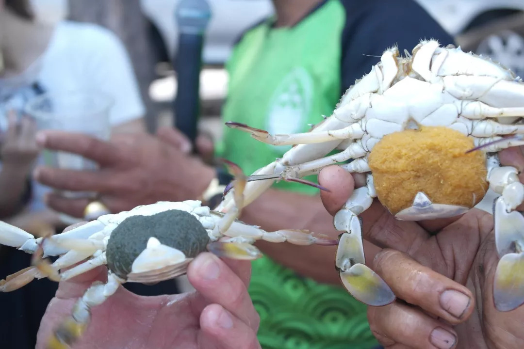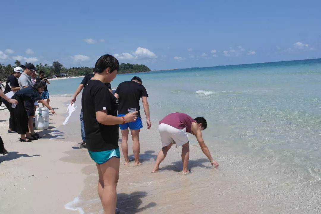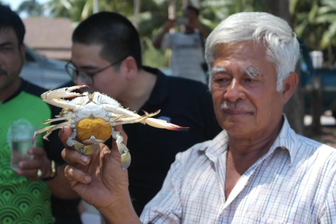 泰国旅游局代表和春蓬螃蟹培育基地的专家讲解说,母蟹每次产卵数能为20万-100万,但是海洋中的自然成活率很低,加上渔民海上捕捉的时候也会抓到母螃蟹,为了保护物种,被误捕捉的母螃蟹会放生回大海。同时,也将海蟹幼苗放回大海,守护海洋,爱护地球,人人有责。