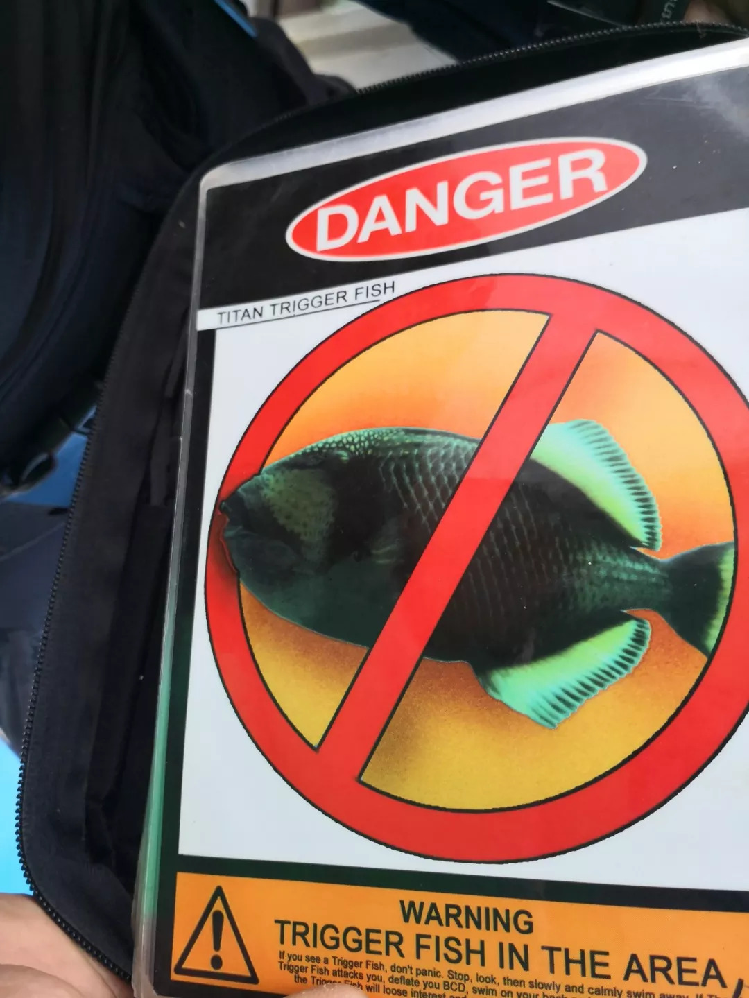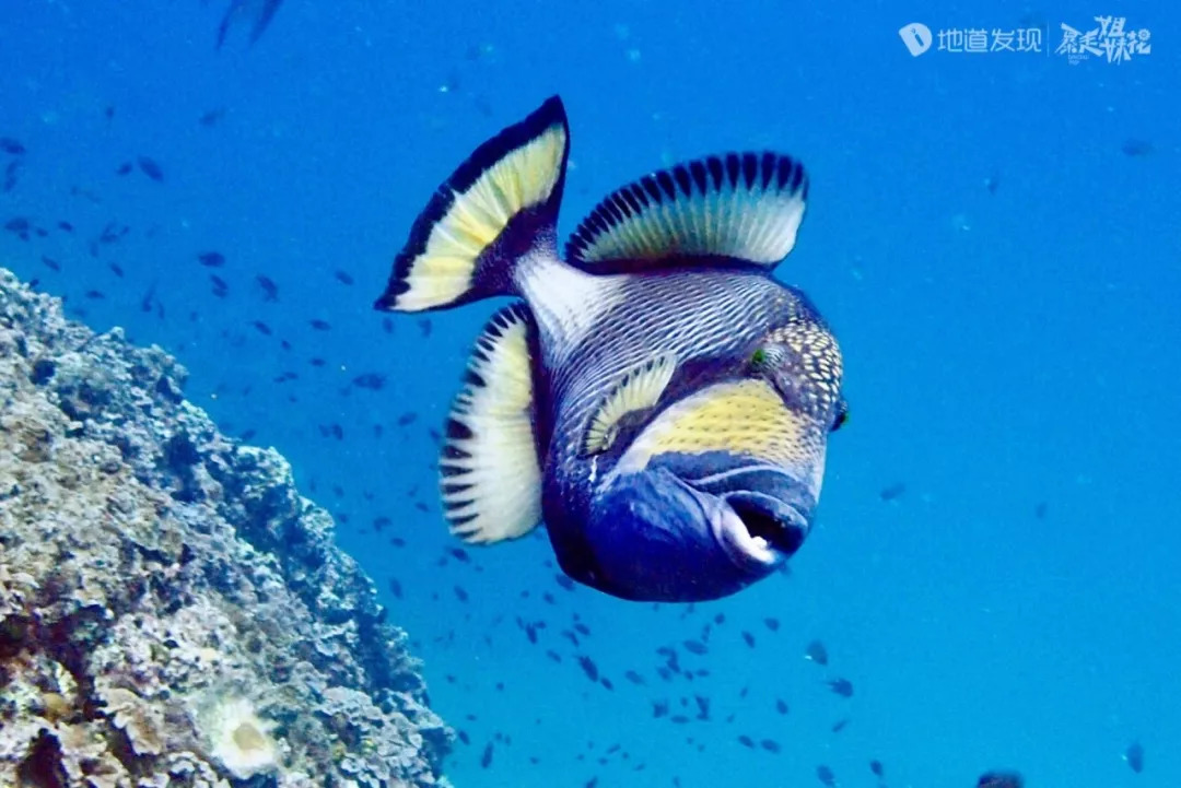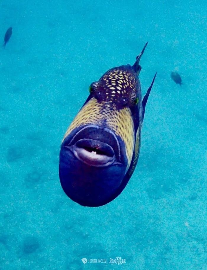 花爸爸在这潜点里,还遇上了扳机鱼(Titan Triggerfish),就是俗称的炮弹鱼!它的领地观非常强,为了保护巢区的安全,它们会异常凶猛地袭击任何接近的生物,包括潜水员,而且攻击速度很快,炮弹之称可不是乱给的哦!