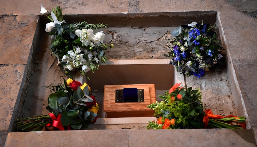 英国当地时间6月15日中午12点,英国物理学家斯蒂芬·霍金的骨灰被安葬在伦敦威斯敏斯特教堂,与牛顿为邻。之后,霍金生前录音由卫星天线广播,向黑洞发射,以纪念这位科学家对探索宇宙黑洞作出的贡献。