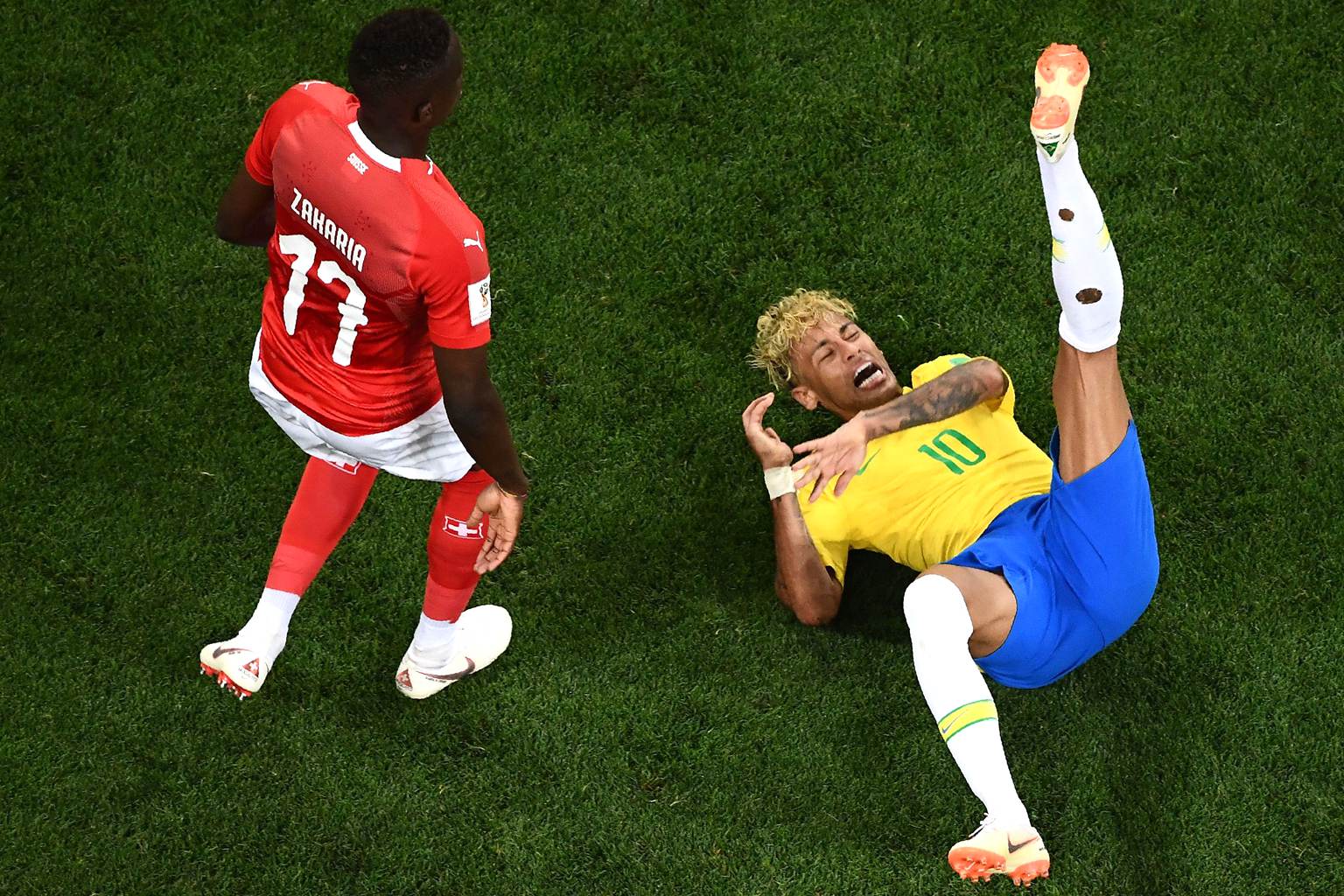 不仅如此,瑞士队在此役的全部3张黄牌,也全都吃在了内马尔身上。第31分钟,利希施泰纳先是从背后一把搂倒内马尔;第65分钟和68分钟,舍尔与贝赫拉米也先后对其战术犯规。至此瑞士队的右后卫、右中卫和右后腰,全因内马尔一人被黄牌警告,其中利希施泰纳和贝赫拉米甚至不得不被保护性换下。
