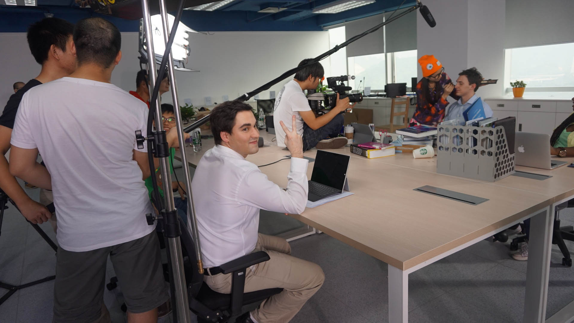 房间里正在拍摄视频,英语、普通话和粤语此起彼伏,摄影大灯灼热,令人恍惚,不知置身何处———现实中,这里是深圳南山区的一栋办公楼。镜头里,这是一个故意留下误解余地的空间。它可以是硅谷或纽约,也可以是上海或北京。
