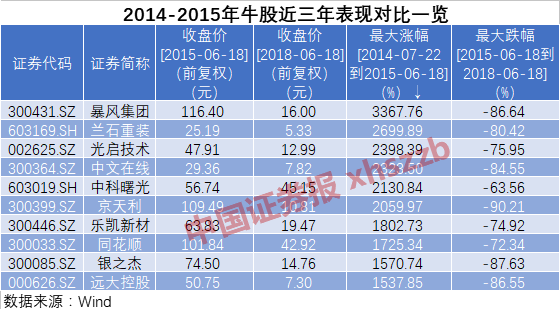 时隔三年,上述牛股均伴随市场回落而大幅回调。