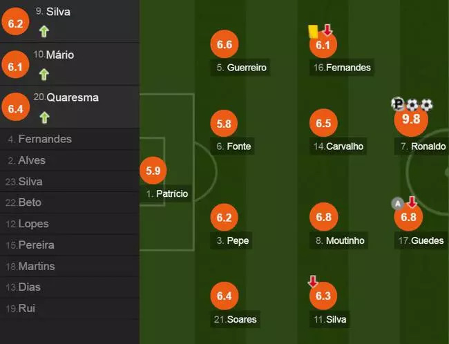 好在,韩国队的金英权表现还算给力,但韩国队输掉了比赛,阿根廷的小马哥则中规中矩。不过,此前的葡萄牙对阵西班牙,冯特也拿到了全队最低分,是两名不及格球员之一。