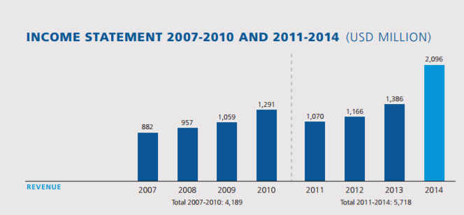 更多球队参与吸引了更多观众,更多观众帮助开拓了更广阔市场,国际足联的扩张型策略没有拖垮财政,相反却不断促进收入增长。在国际足联的运作下,足球这一原本仅流行于欧美的草根游戏。已逐渐成为了令全世界疯狂的运动。