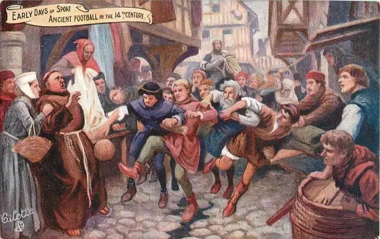 现代足球的起源是相当接地气的,它一没有运动规则,二没有固定场地,甚至可以没有球,战俘的头颅、吹胀的猪膀胱,只要是圆的东西都可以踢。