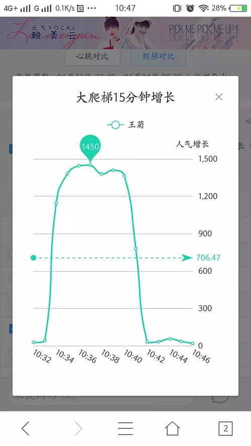 王菊粉丝群对于刷票和水军相当敏感,在她火了以后,某天王菊的网络人气热度悬崖式猛增,菊姐粉丝的第一反应不是开心,而是警惕起来——他们不能接受任何刷票刷热度的虚假行为,“要让菊姐红得清清白白”。