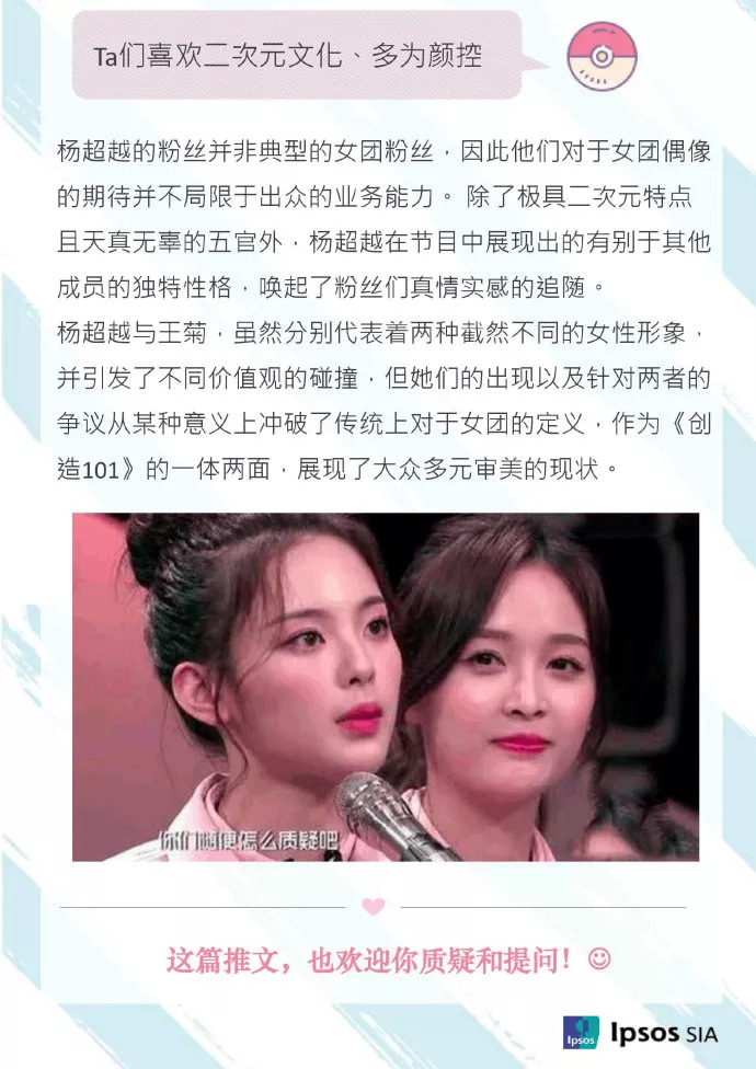 杨超越和王菊已经成了两个现象级大 IP 。最近严肃高冷的益普索,还分别针对她们的粉丝做了精准的调研。