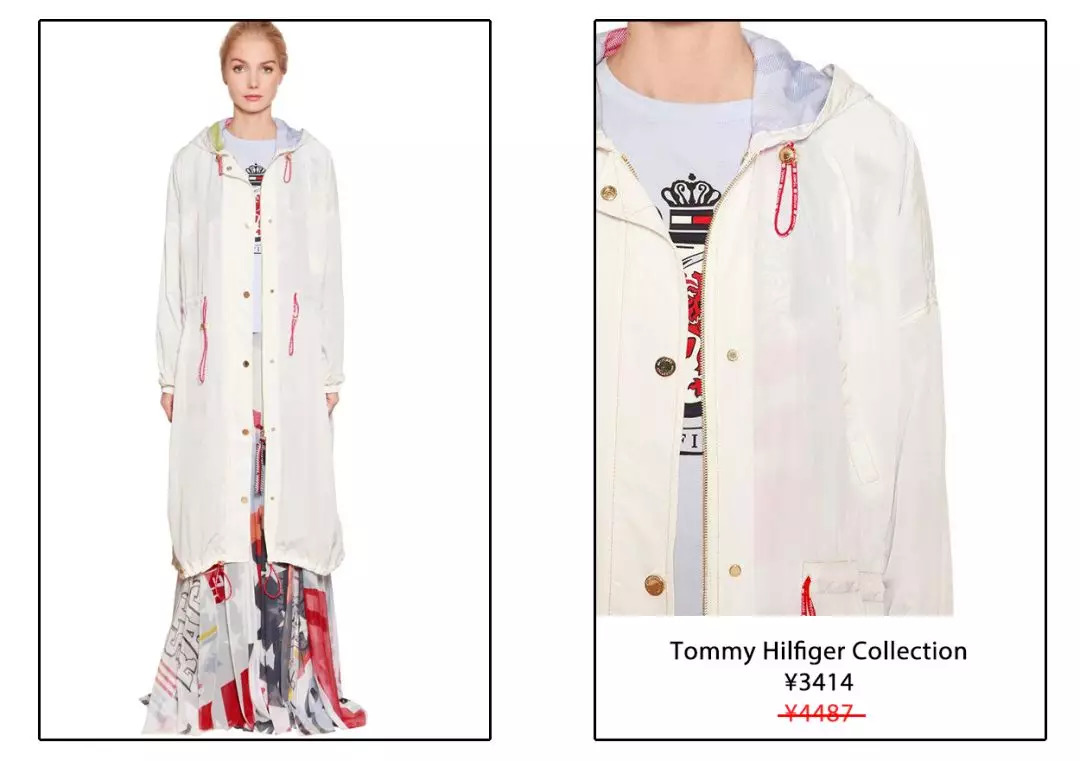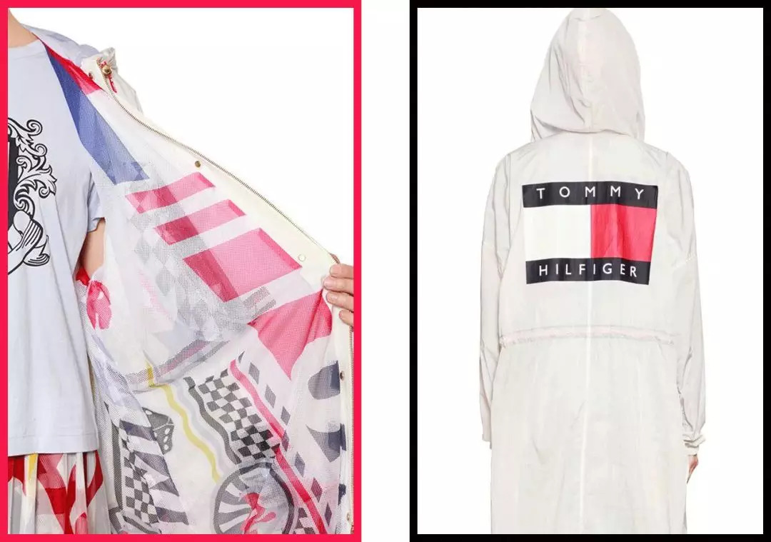 还有这件Tommy Hilfiger的长外套也很有意思,属于闷骚款,外面看上去就是红色抽绳装饰的白外套。