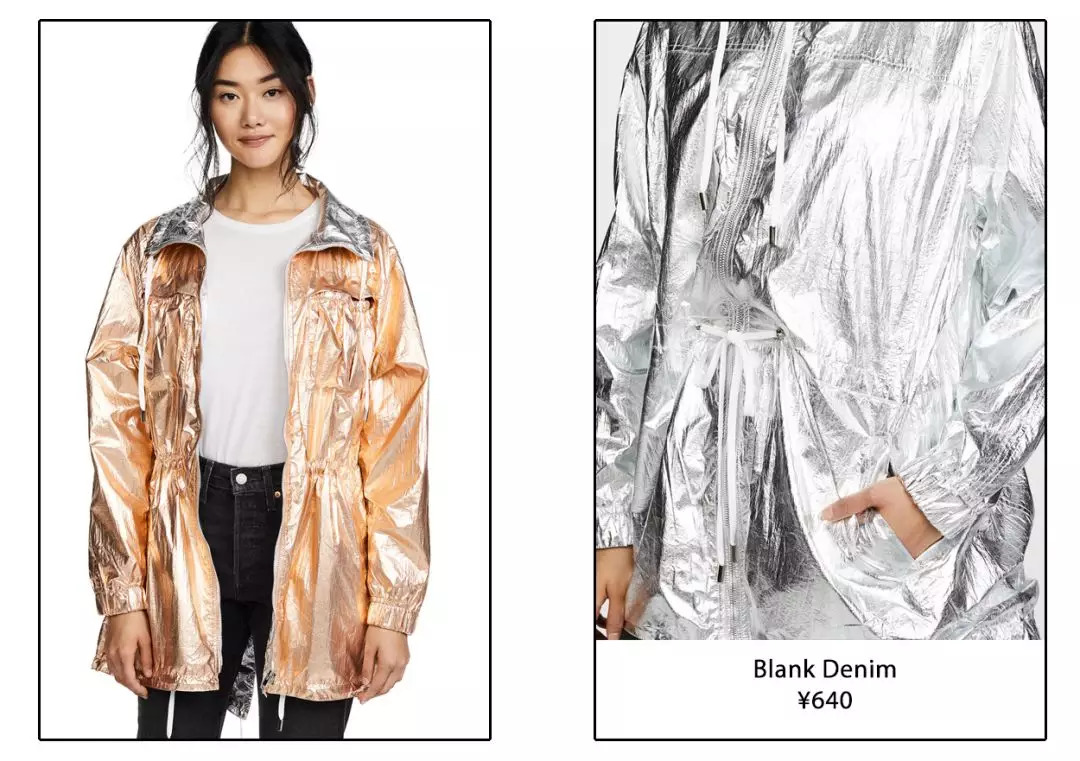 接下来要重点说的是我最喜欢的方口袋,为了更直观说明问题,我挑了这件正反两面可以穿的金属色外套。相比之下,左边就比右边更帅更有型。