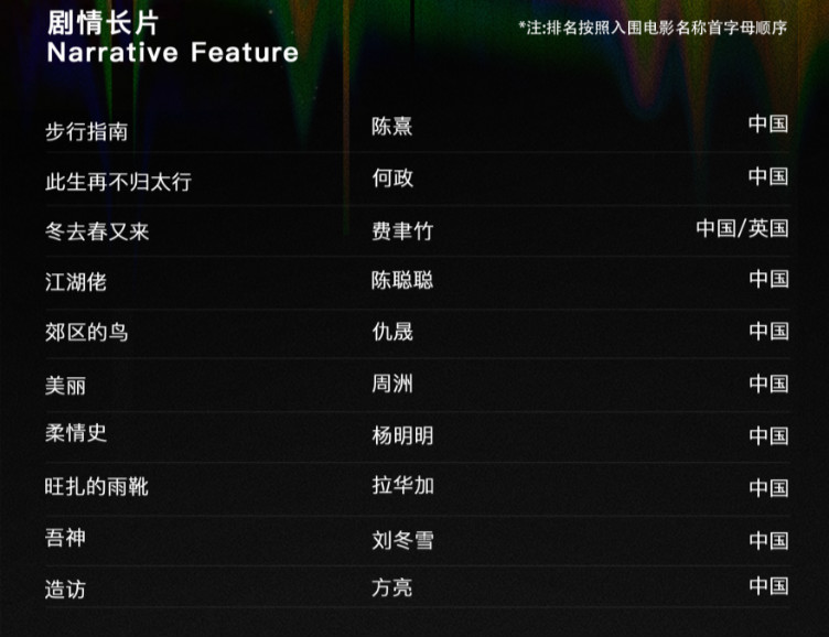 这38部影片,都将在7月21日到30日期间在青海西宁万达、耀莱成龙、银河欢乐影城进行放映上映。7月27日,最终获奖名单,也将在主竞赛评委会主席陈国富,评委苏照彬、廖本榕、裴曼·亚茨达尼安、菲利普·伯拜、周浩、杨福东的评选后诞生。
