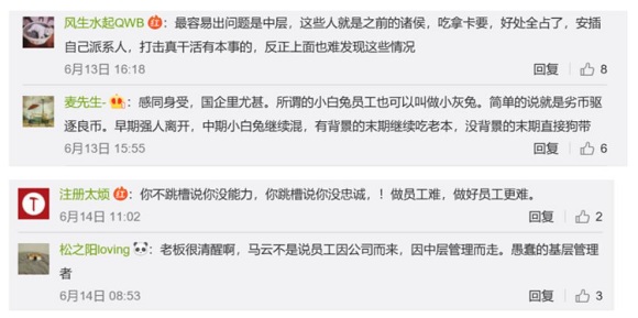 大佬们的意见倒是相对统一。其实“干掉小白兔”已不是一个新说法,在此之前,不少企业和企业家都早持有乃至实施了这一管理理念。