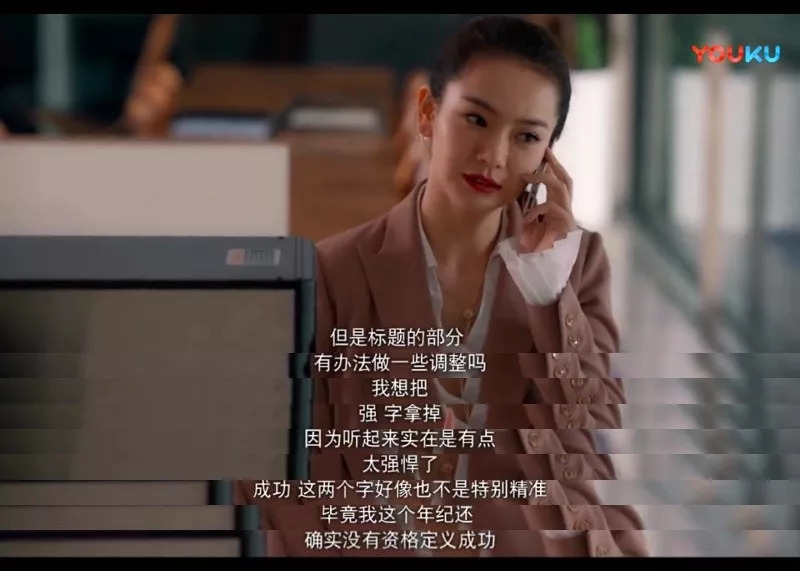 同样是采访稿的戏份,海燕一身黑色职业装,举手投足的自信。