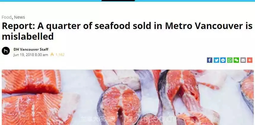 这25%的错误率也太夸张了吧......不过和全国的情况比起来,大温显然已经很不错了,因为25%的错误率基本与全球持平,而根据2017年的一项海洋研究倡导机构Oceana Canada在全加拿大范围内的抽查发现,有41%的海鲜产品被贴错了标签!
