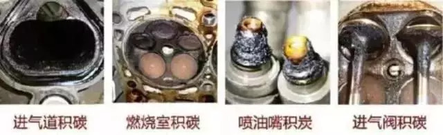 产生积碳主要是由于燃油在发动机内燃烧不充分,或汽油中无法完全燃烧的石蜡胶质物质,在喷油嘴、节气门、油路管路、火花塞等部件中残留,在高温作用下,转而形成积碳。