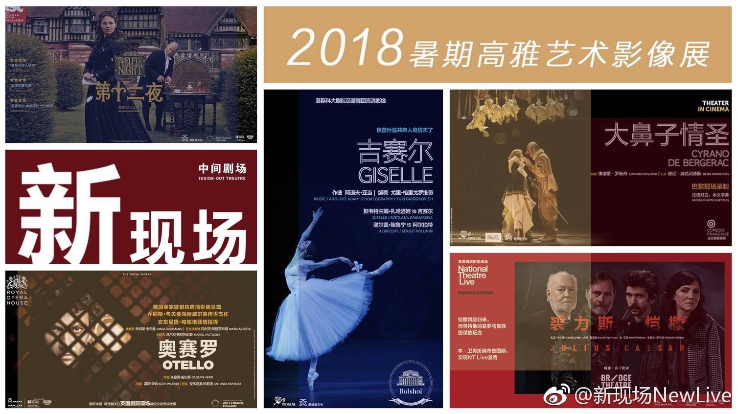 6月20日,“新现场”高清影像放映系列公布了2018年下半年即将带来的作品片单,线上、线下共有58部话剧、音乐剧、歌剧、舞蹈以及展览高清影像。