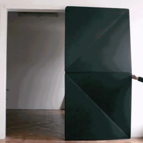 门扇以四块独立的三角面通过精心计算之后组合而成。