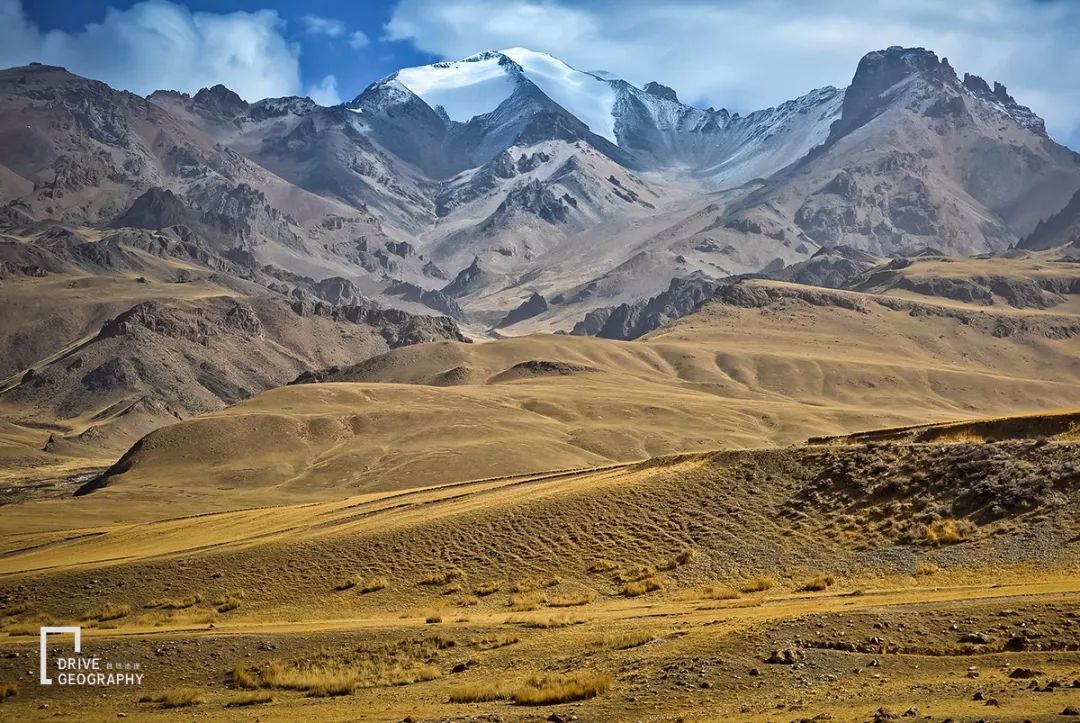 周围都是雪山环抱,公路在盘山曲折上升,翻越祁连山的垭口有4300米海拔,可以看到祁连山主峰素珠链,主峰上依然是白雪皑皑。
