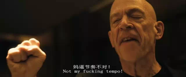 但光靠狂热,还是成不了事。弗莱彻的另一招是欲擒故纵,把你带进坑,再把土埋到脖子,再在一边边说风凉话,边看你能不能爬上来。受不了的,出走的出走,改行的改行,哪怕是寻了短见,这个暴君也“绝不会为我所作的努力道歉”(但讲述Sean死讯时的几度哽咽,还是证明了他的负罪感)。但不翻过他这座山,你就永远见不了自己,更别提天地和众生。跟我的节奏,不是我的节奏,麻痹节奏不对!快了,拖了,跑调了,你有天赋,你没天赋,你到底有没有天赋?一声声喝骂,其实都是烟幕弹。从第一场排练弗莱彻骂走胖子,就已经直接显出这个老犊子的狠辣——他其实是用另外一种方法逼你反抗,尽信师不如无师。最好,你能弑师。踩着老师的尸体,你才能成为下一个查理·帕克。