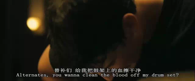 通观全片,你看不见那些优美的灵感火花,有如神助的灵光闪现,主人公更不是那种撒尿都能撒出节拍的不世出天才。有的,只是一层层被消耗的创可贴,一滴滴的血和汗,一次又一次的崩溃和重新站起。内曼所做的只是像当年比赛输掉后哭着入睡的查理·帕克一样,哭醒后起床的第一件事,就是练琴,练琴,再练琴(Hepractices, and he practices,and hepractices)。所以所谓天赋,或许也只是那些不为人知的狂热,执着与信念的另外一个名字。